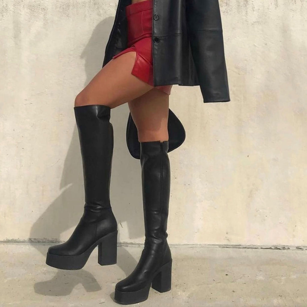 Kiss City Chunky Platform Knee High Boots